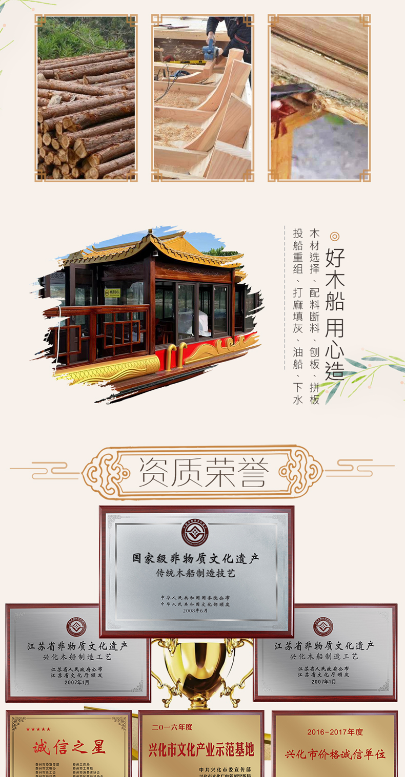 仿古电动14米画舫游览船景区公园餐饮观光45人座接待客船