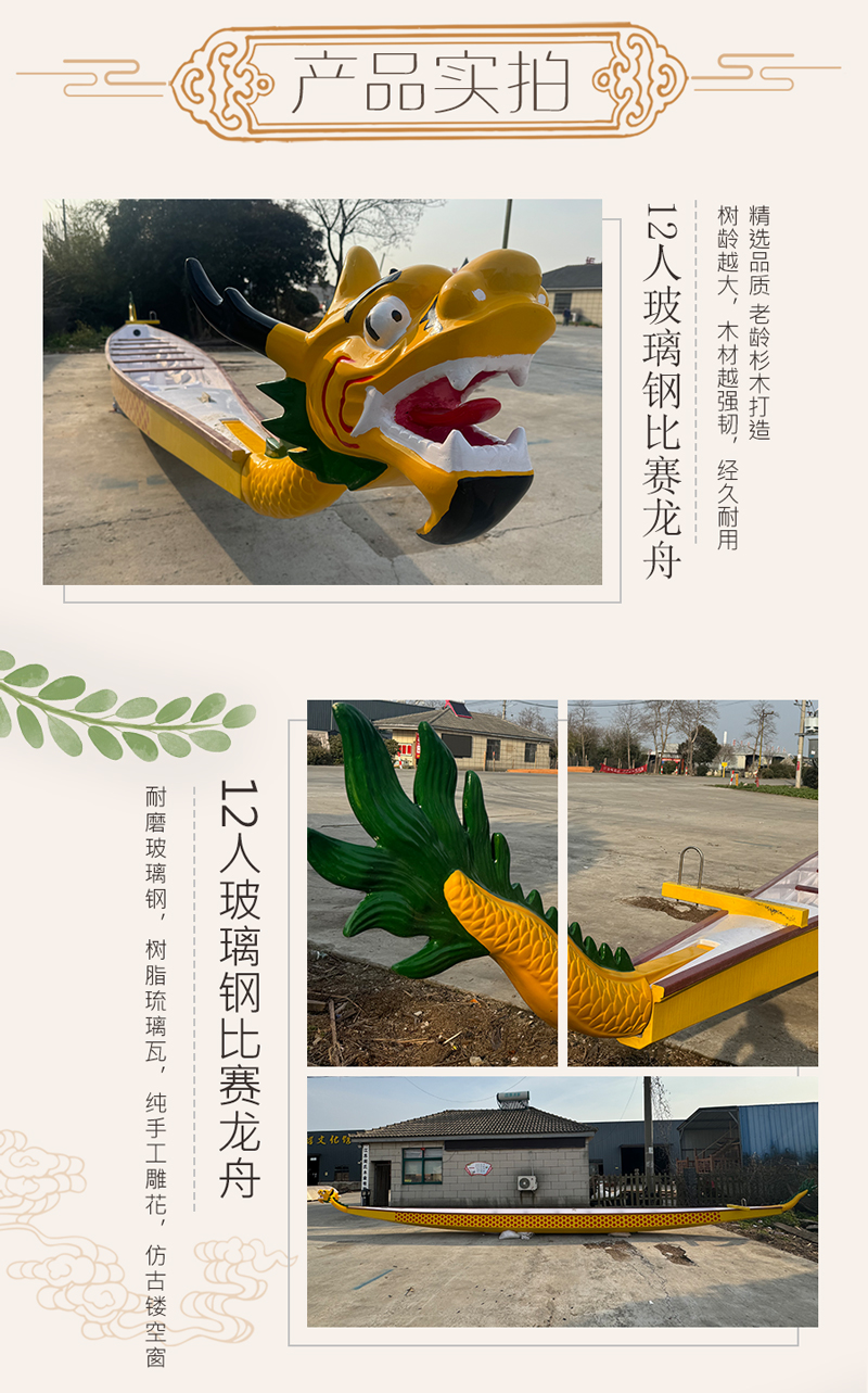 端午节水上12/22人手划龙舟周氏木业定制 标准型比赛国标龙船 规格 | 12人24人 | ||