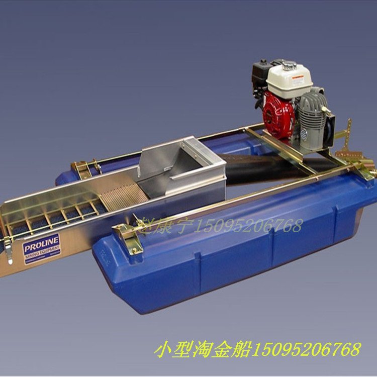 本淘金船是专为复杂河床条件下开发设计的专业化淘金设备。淘金设备为目前先进的皮带溜槽式提金装置,黄金提取效率高。船体为轻钢框架结构,极易拆装,便于运输,采用高强度塑胶浮体,更符合环保要求。