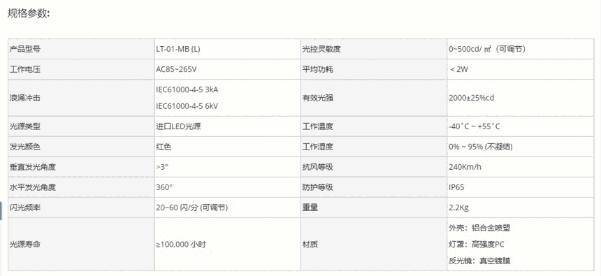 • 规格:LT-01-MB(L)