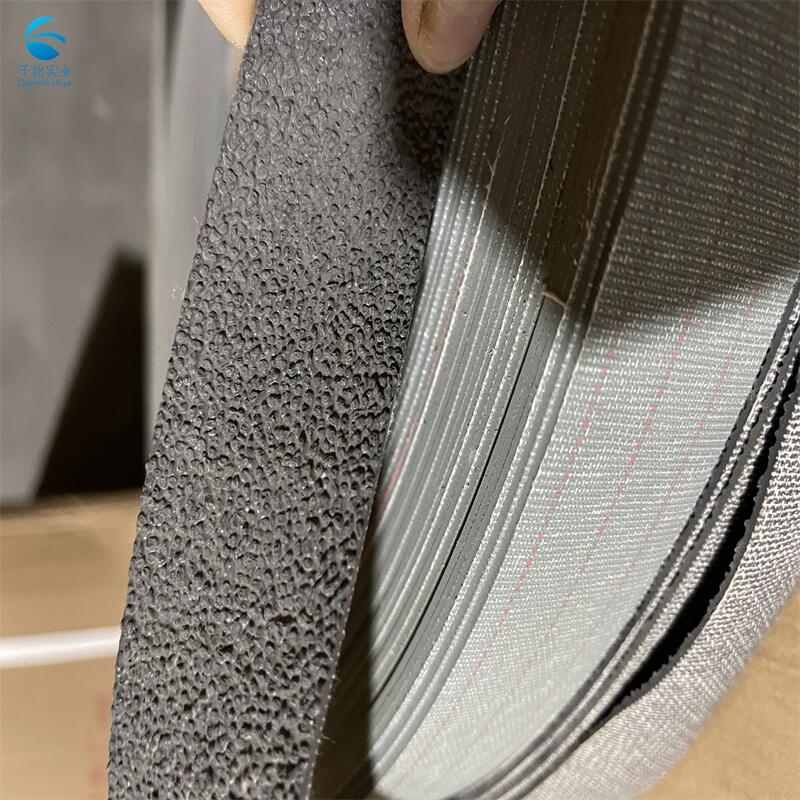 千始集团(上海)工业皮带有限公是引进德国先进技术进口橡胶加工生产橡胶包辊糙面带,质量经多家纺织配套厂适用后反应很好,耐磨性和防滑性,不低于国外糙面带能力,欢迎客户来电索取样品,检测糙面带、糙面橡皮(包辊带、糙面橡胶、刺皮、粒面橡胶、粒面橡皮、包辊皮、辊包皮、颗粒带、颗粒皮、粒面带、粒面皮、糙面皮防滑带)。防滑胶带又称软木胶带英文名:CKZ RUBBER。此产品表面为橡胶与软木混合压制而成,所以能产生良好的防滑效果且有一定厚度经久耐用。又因其表面外观象芝麻所以又俗称芝麻胶带。