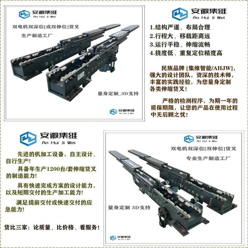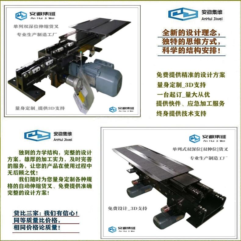 安徽集维智能装备有限公司[马鞍山市]是一家集研发、生产、销售为一体的堆垛机伸缩货叉生产制造厂家,拥有完整的质量管理体系、丰富的设计经验,雄厚的加工实力,自主设计、自行生产,具备年生产1600台套伸缩货叉的制造能力,具有快速完成方案的设计能力,短期交付的生产加工能力,具备提前交付或快速交付的应急能力!