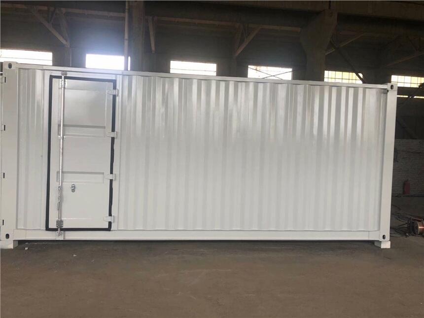现在,客户需要箱体承重8吨左右。 20尺箱体即可满足。当然尺寸越大会面临成本问题。。20英尺标准集装箱尺寸:6058*2438*2591(mm)即可符合要求。承重8吨,可选择4mm花纹底板。因为涉及到箱体会有工作人员进出,所以大部分客户会提出对箱体进行简单装修。箱体后端开集装箱后门方便设备进出,正面安装防盗门。排风散热就可以焊接或安装百叶窗及排风扇,具体位置根据设备在箱内的摆放位置而定。一般箱体还会有进线和出线口,一般设计在箱体下方。并且线口处还会考虑防水问题,这就看设计人员的经验了。