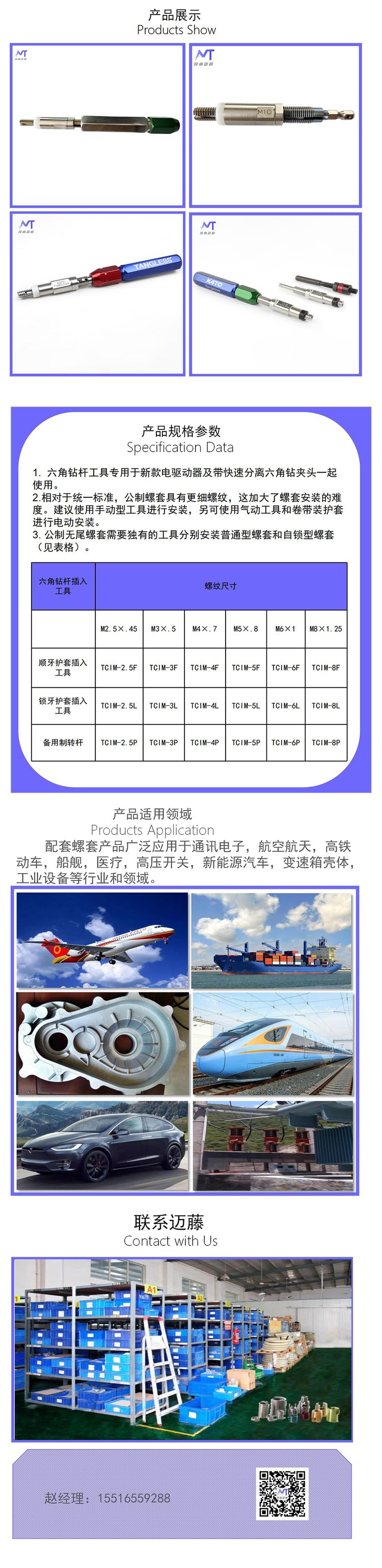适用范围 | M2-M12顺牙无尾螺套安装 | ||