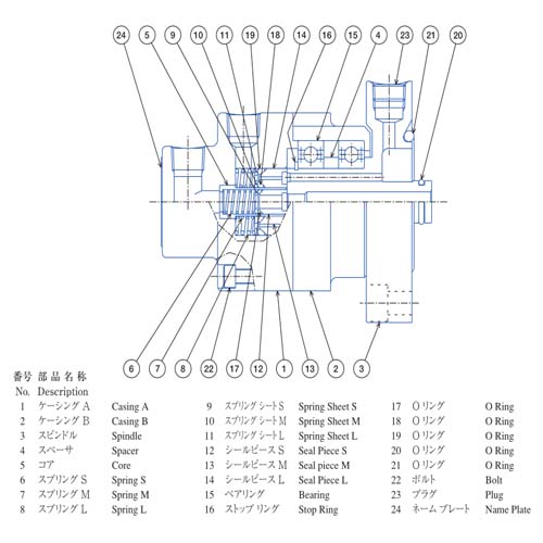 空压用2通路旋转接头是通过轴端部2个独立通路供给流体的。因此,2个通路可流动不同流体。外部配管接续部出入口是JIS管用锥形螺纹。