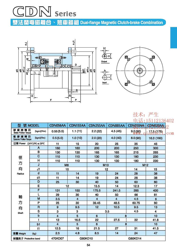 规格 | 双法兰离合刹车器组合 | ||
