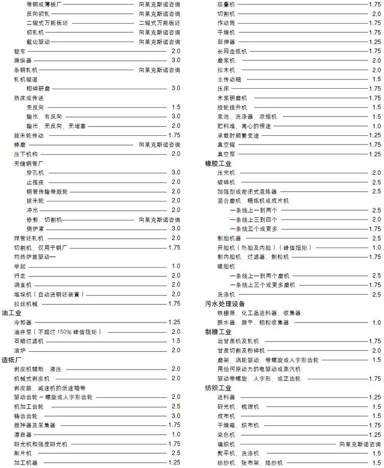 ? ? 3.所需联轴器的扭矩根据下面式子决定:联轴器的扭矩= S.F. ( 工况系数) x 系统扭矩(Nm)