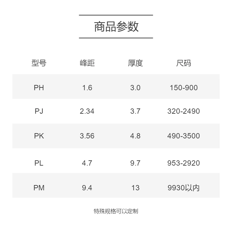 拉力强度 | 高强度,满足各种传动需求。 | ||