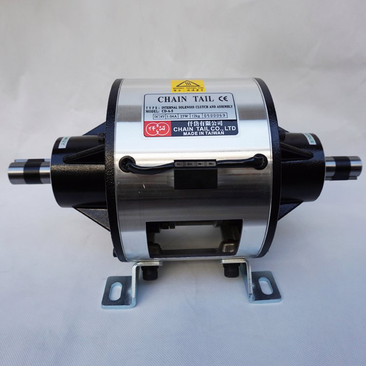 离合器之转子被固定於入力轴上,离合器之电枢与刹车则在同轴而形成的出力轴,离合器之轭与刹车装置於机架上。