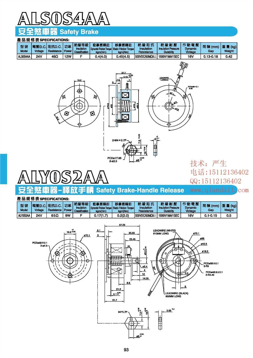 ALS0S4AA/ALS0S4AE 86步进电机专用断电制动器