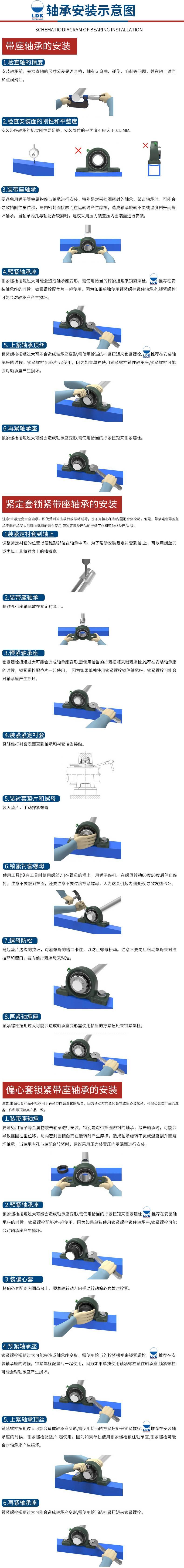 * 该系列的轴承座可在两侧车盖槽用以安装铁盖来防止灰尘的进入并确保操作安全。
