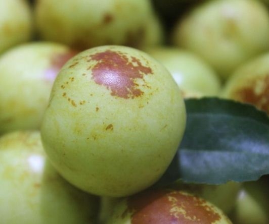 鲜枣含人体所需的19种氨基酸和A、B、C、P等多种维生素,可溶性固形物34%~38%,维生素C3平均含量52mg/100g,堪称 “活维生素丸”。