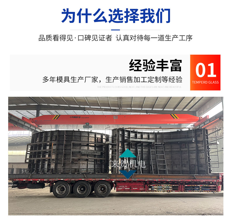 预制楼梯模具构件出厂采用大型平板运输车运输,预制楼梯模具构件采用水平态运输,堆叠层数不高于4层,层间采用木质缓冲楔形垫块支撑于吊装孔位置进行隔垫,确保运输中构件的安全。