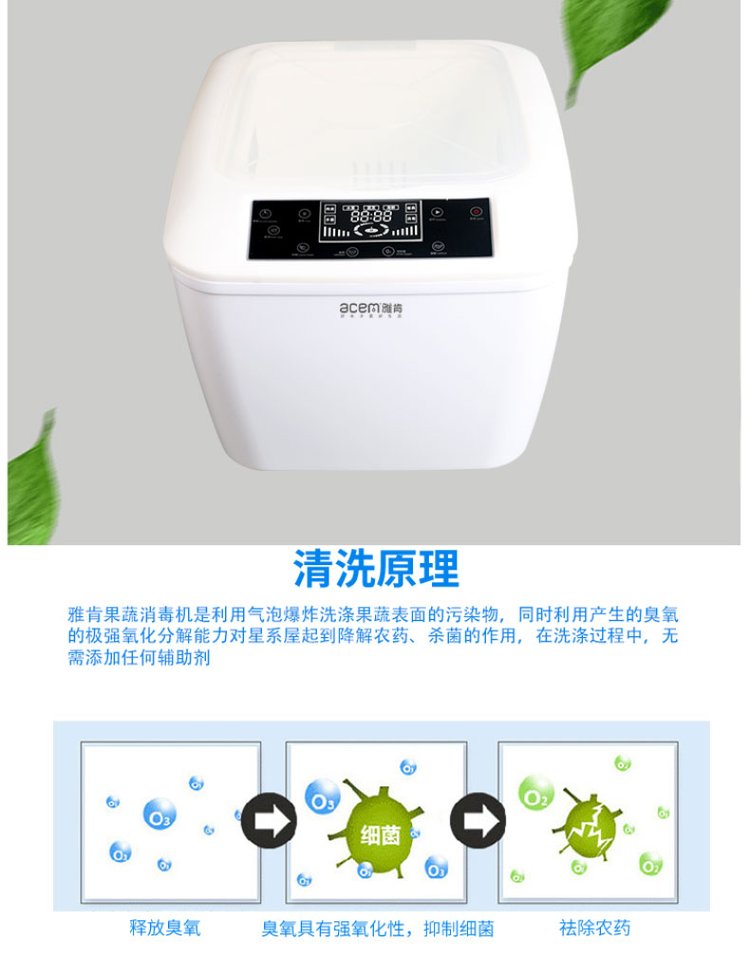 产品原理通过臭氧发生器产生臭氧清洗果蔬
