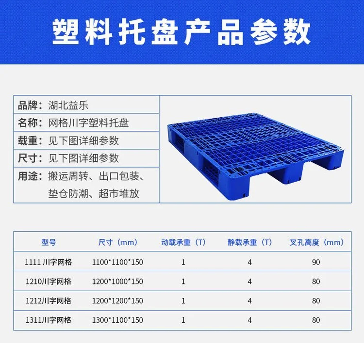 武汉地区塑料托盘多规格高承载轻型九脚托板网格川字塑料栈板