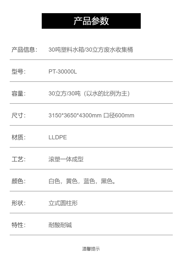 塑料水箱30吨废水收集桶30T沼液肥储存罐纺织印染用
