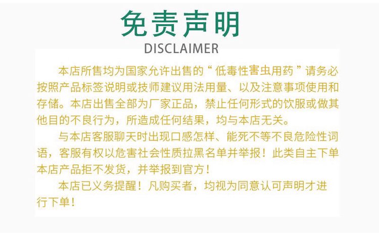 制作方法 | 本品用水稀释10倍,与大米、玉米、小麦等粮食,或加入少量植物油,拌和均匀,凉干后即可投放。 | ||