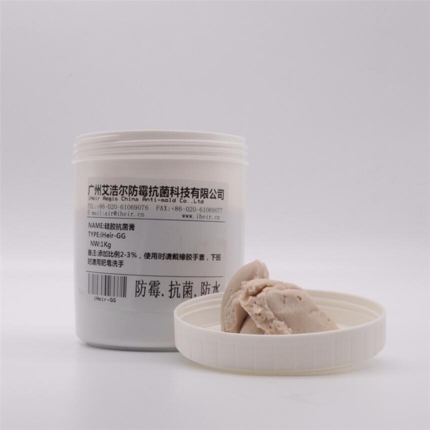 iHeir-GG硅胶抗菌膏是广州艾浩尔独家研发的具有国际先进水平的新型硅胶抗菌材料。用在 硅胶上不但不会导致发黄、也不会影响硅胶制品的透明度,安全等级达到医疗食品级,抗菌 率高达 99.99%,iHeir-GG 硅胶抗菌膏是以优质膏体为载体,将具有优质抗菌功能的材料以稳 定的形态均匀地分布到膏体结构中。具有安全性高和耐热性好,化学稳定性好,可添加到各 类硅胶中,起到抗菌作用,可对各类细菌进行高效广谱的杀灭和去除。