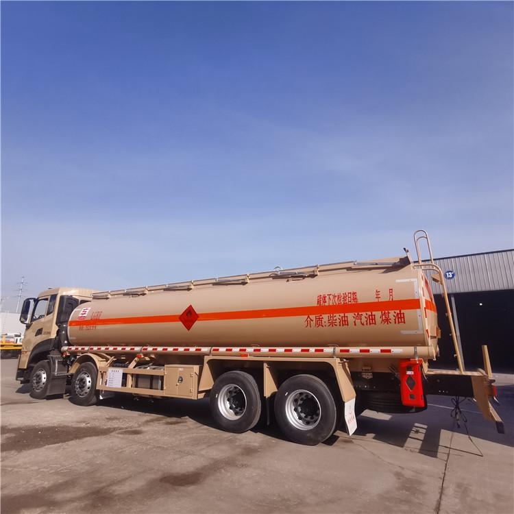 上装配置: 严格按照公告尺寸制作罐体容积30.5立方,实际有效容积30.5方,罐体材质:国标5182铝合金材质,双仓带欧标全套:(两个欧标罐口、两个防溢流探杆、静电插座、油气回收、两个下装口、两个海底阀)安装副驾驶室一侧,罐体采用涨型封头6mm,罐体6mm,带山东80/80专用油泵,双仓带泵进泵出3寸管道3寸出口安装副驾驶一侧,后保险杠为可翻转,折叠护栏和附件均采用铝合金材质,两根罐体等长输油管、两个灭火器、一个防火帽、安全告示铝牌、全车欧式锁、牌照灯,其余标配。油漆:铝合金本色、贴反光条、反光带、安全告示、贴 “易燃” 标。