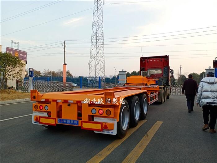 码头转运挂车,20英尺集装箱骨架后翻运输半挂车