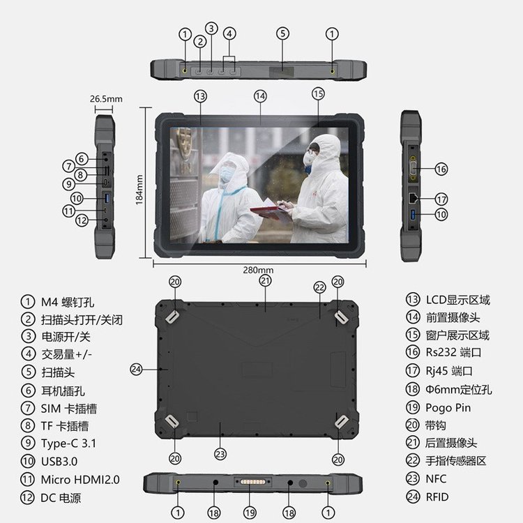 12代N100手持三防平板电脑Win11pro系统IP67工业级加固10.1寸