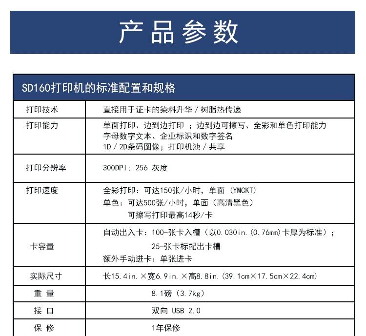 SD160证卡打印机具备全彩色或单色一次成型高效打印功能和一体化的磁条编码功能。应用领域包括企业门禁卡、健康卡、学生卡、访客或员工胸卡、零售、医疗机构或俱乐部会员机构的会员卡或积分卡等。