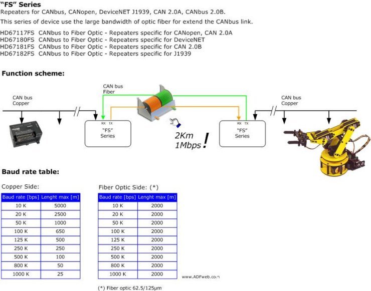 传输距离 | 使用大带宽光纤扩展CANBUS链接 | ||
