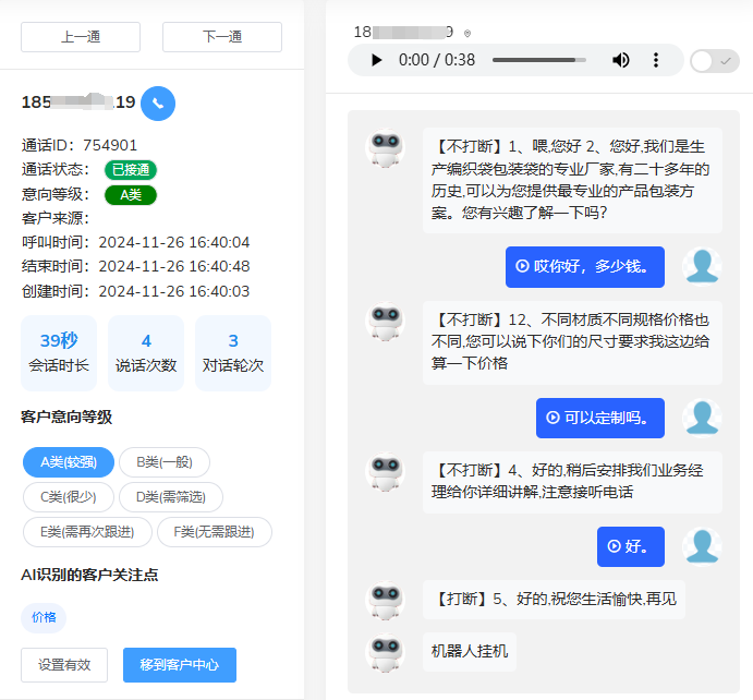 2、自动筛选出意向客户,排除无效客户(如拒接、未接、说不需要),留下真正有意向的客户。