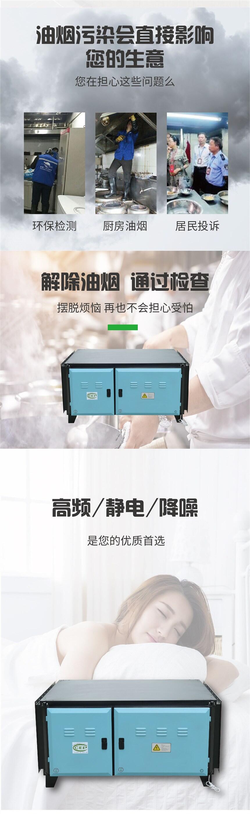 采用高频静电工作原理,整机具有过载保护、漏电保护功能;电源模块具有过载断电及预防起火能;放电模采用模块式结构,方便安装维护。净化效率可达95%以上。