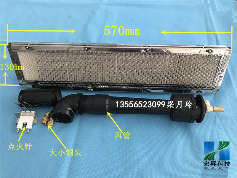 肇庆宏昇喷涂机械批发代理的红外线瓦斯燃烧器(又名瓦斯炉头、燃气炉头)燃烧性能好,使用寿命长,性价比高。瓦斯燃烧器外壳采用耐高温铸钢,热能板选用进口耐高温蜂窝多孔陶瓷板为燃烧面板;瓦斯燃烧器在燃烧时与空气完全预混,确保燃烧完全,从而降低污染物的排放;瓦斯燃烧器燃烧时通过辐射方式传递约70%能量转变成红外线波,此种红外线波2-6um最易被物质分子、高分子吸收,并具有较强的穿透力,能激发水分子发生共振、可将热量均匀的渗透到被加热物的核心深处,保证加热效果均匀、提高加热质量和烘干效率,高效节能、升温快、热值高、节能燃气40%以上,燃烧温度高达1000℃,一般炉具只有600℃左右。因此用红外线燃烧器加热、烘干、保温、时效处理、供暖已成为一种新的工艺、新趋势,它已广泛运用于工业烤漆、陶瓷、食品、印染等各行业和各领域。最常用的有1602#炉头:发热量5400kcal/h,耗气量约0.46㎏/h,若用电需耗6.3度,实践证明用红外线燃烧器加热烘烤可节省 30% — 50% 能耗
