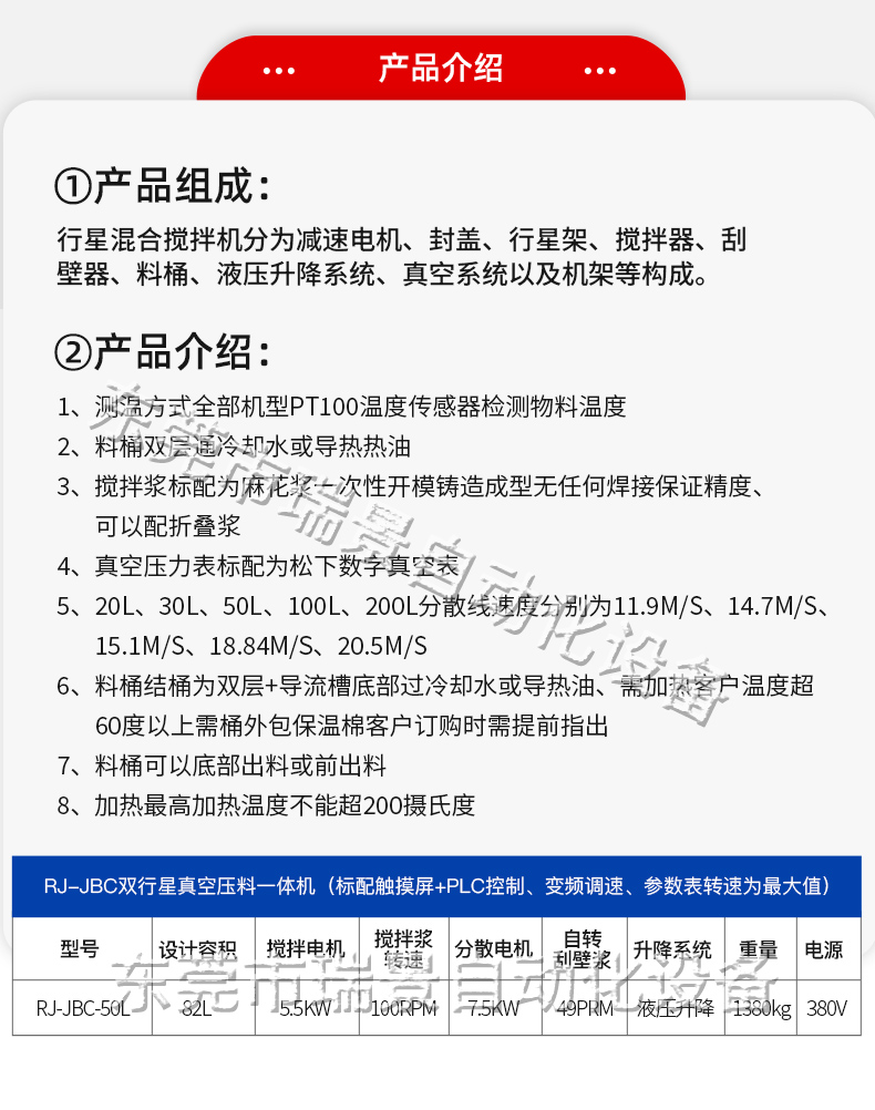 规格 | 50L行星真空搅拌机定金 | ||