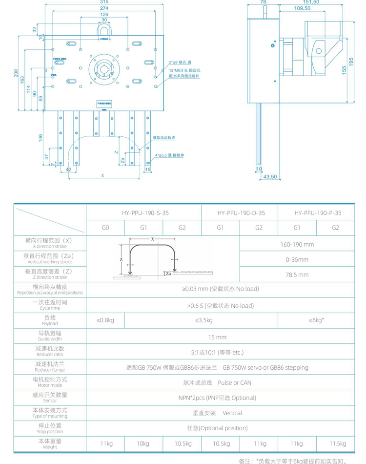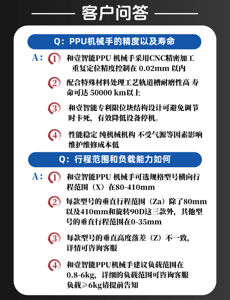 和壹双轨高精度ppu凸轮机械手190mm行程平移式快速搬运伺服驱动模组ppu机械手厂家