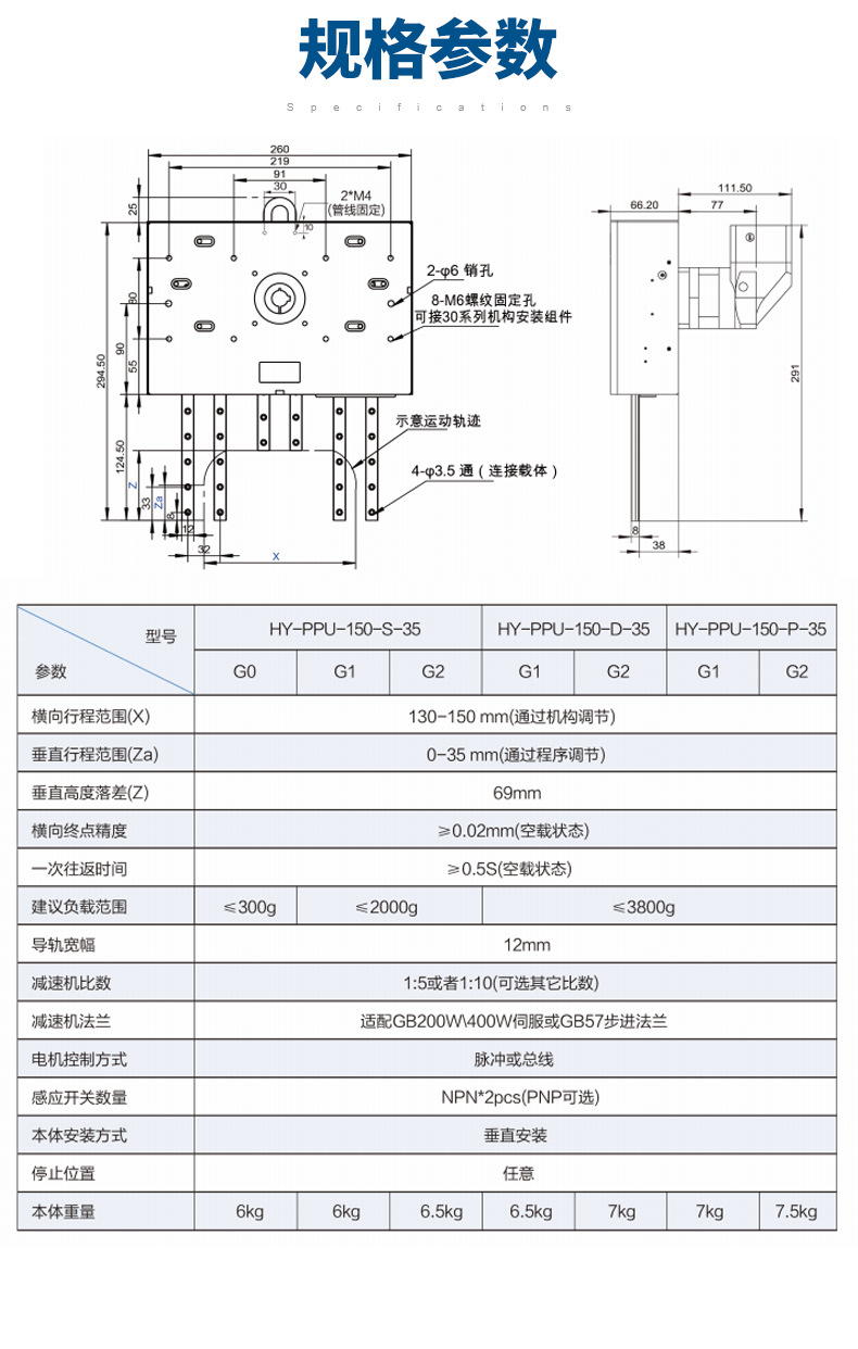 和壹双轨高精度ppu机械手凸轮结构150mm重载型平移式快速搬运伺服驱动模组