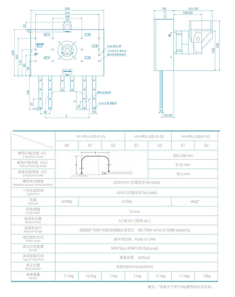 和壹高精度ppu机械手凸轮结构230mm行程伺服驱动平移式搬运模组